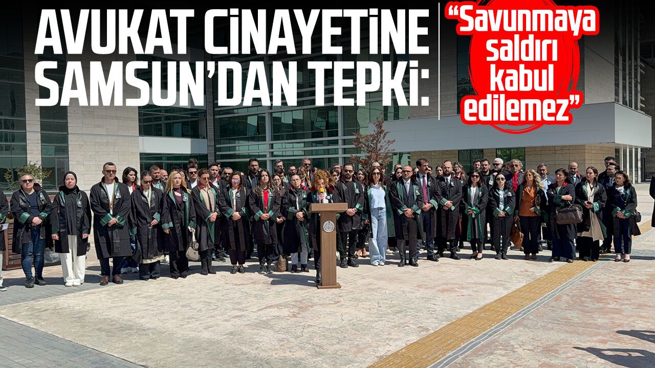 Samsun'da avukatlar, meslektaşlarına yönelik artan şiddet olaylarına tepki göstermek için adliye önünde bir araya gelerek, 'Savunmaya saldırı kabul edilemez' mesajı verdi.