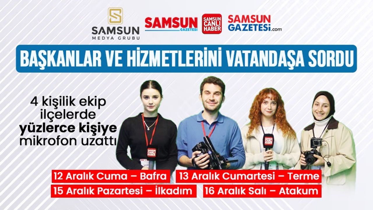Samsun Medya Grubu, ilçelerde belediye başkanlarının görev sürecindeki çalışmalarını ve hayata geçirilen hizmetleri vatandaşlara sormak için kapsamlı bir saha çalışması başlattı.