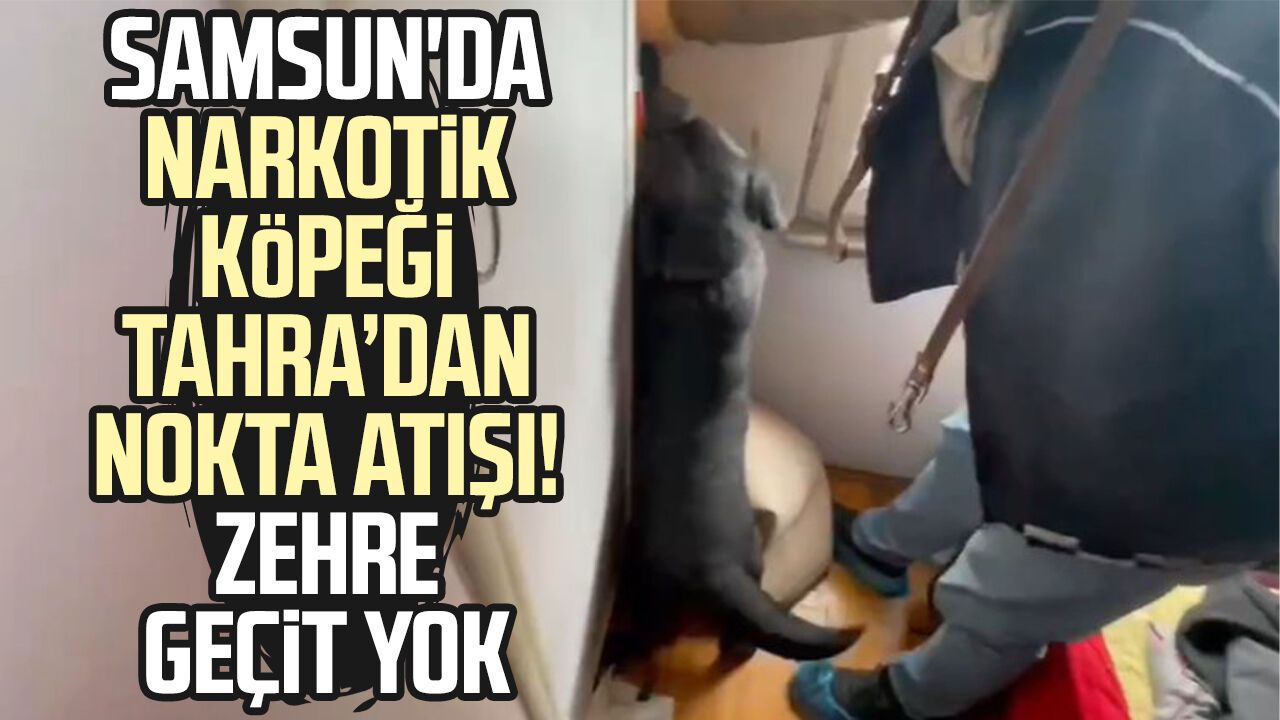Narkotik dedektör köpeği "Tahra"nın desteğiyle yapılan aramada, dolaba gizlenmiş poşet içinde 5 kilo 120 gram uyuşturucu ele geçirildi.