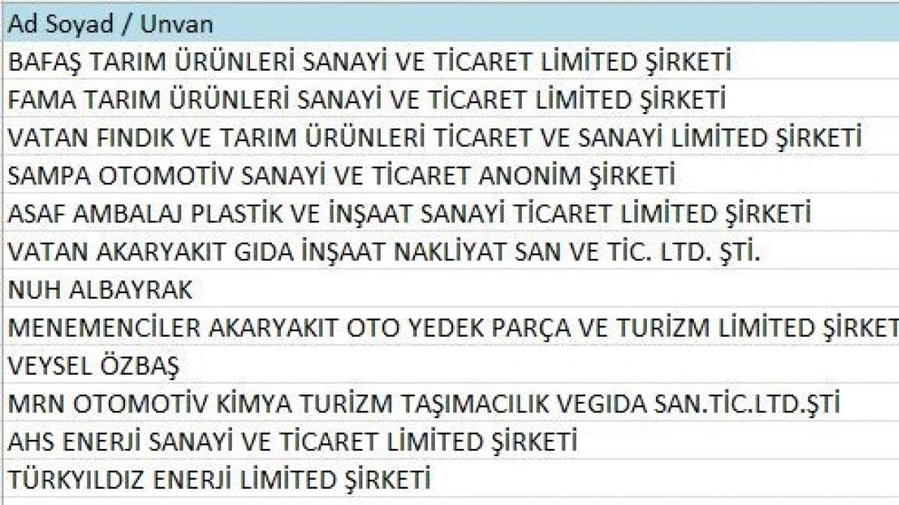 İkmalen, re’sen veya idarece yapılan tarhiyatlar nedeniyle kesinleşen ve toplam tutarı 5 milyon TL ve üzerinde olan vergi ve cezaları içeren A listesinde toplam 207 milyon 962 bin 915 TL ile 12 şirket kendine yer buldu.