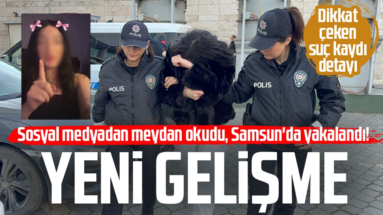 Samsun'da sosyal medya üzerinden polis ve bekçilere hakaret ederek 'Beni yakalayamazsınız' sözleriyle meydan okuyan, hakkında 'tehdit' suçundan 5 ay kesinleşmiş hapis cezası bulunan ve 19 ayrı suç kaydı olduğu öğrenilen 24 yaşındaki kadın yakalanarak adliyeye sevk edildi.