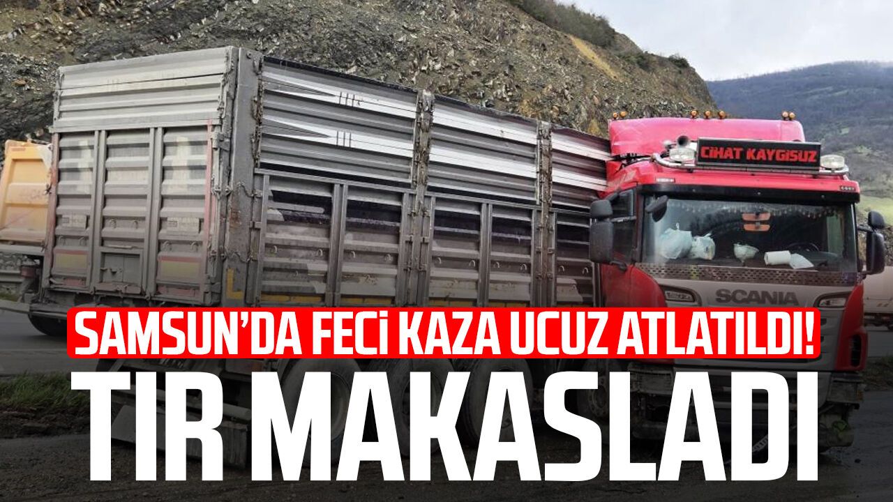 Samsun'un Kavak ilçesinde yağışın etkisiyle kayganlaşan yolda kontrolden çıkan tırın makaslaması sonucu meydana gelen kazada sürücü yaralandı.