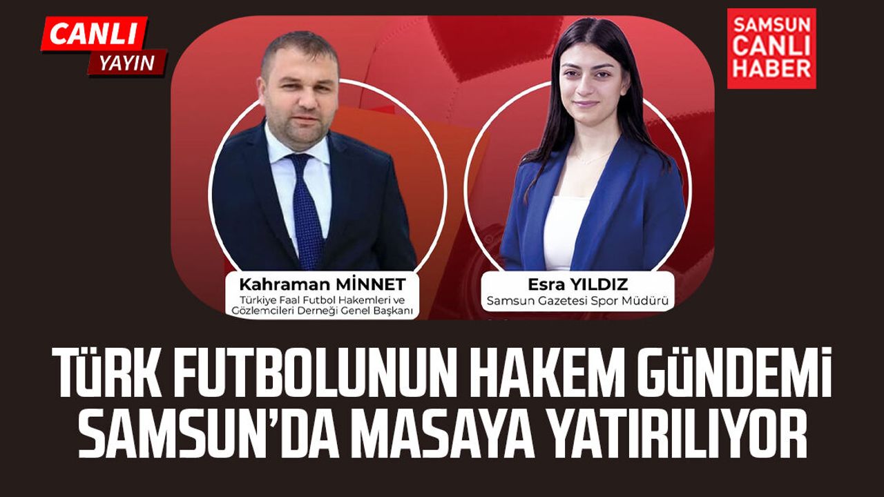 Türk futbolunda hakem kararları ve sistem tartışmaları sürerken, Kahraman Minnet Samsun Canlı Haber ekranlarında önemli açıklamalarda bulunuyor. Samsun Gazetesi Spor Müdürü Esra Yıldız’ın konuğu olan Minnet; hakemlik mesleğinin bilinmeyen yönlerini, yerelden ulusala çözüm arayışlarını ve Türk futbolundaki güncel gelişmeleri canlı yayında değerlendiriyor. Programda ayrıca hakemlere yönelik eleştiriler, sistemin işleyişi ve sahadaki karar süreçlerine ilişkin merak edilen başlıklar da ele alınıyor.