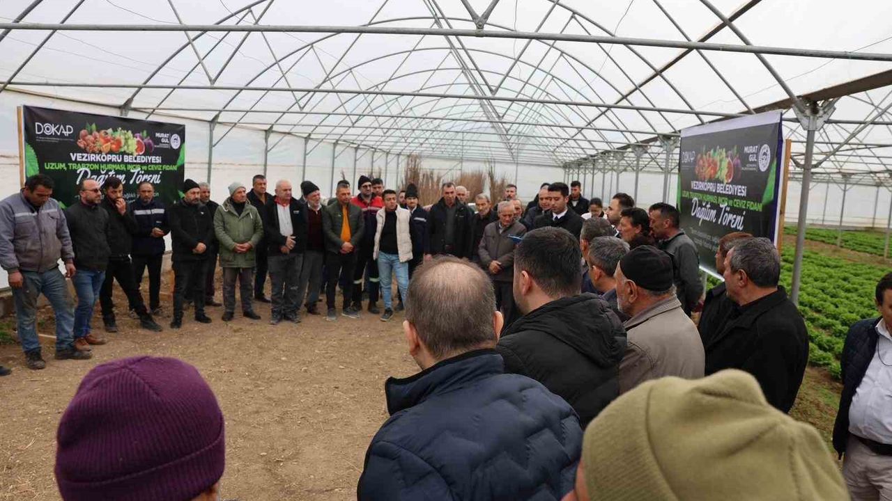 Samsun'un Vezirköprü ilçesinde 'Meyveciliği Yayma ve Geliştirme Projesi' kapsamında 12 bin 500 meyve fidanı dağıtıldı.