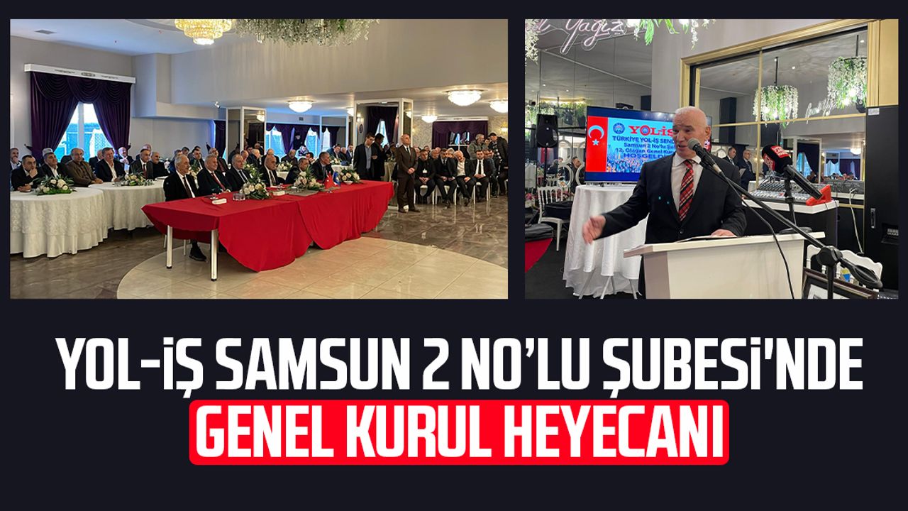 Türkiye Yol-İş Sendikası Samsun 2 No’lu Şubesi’nin 12. olağan genel kurulu, İlkadım ilçesinde gerçekleştiriliyor.. Yağız Spor Tesisleri Düğün Salonu’nda saat 10.00’da başlayan genel kurulda sendika üyeleri ve davetliler bir araya geldi. Genel kurul programında açılış ve yoklama, divan teşekkülü, saygı duruşu ve İstiklal Marşı’nın okunması, çalışma ve murakıp raporlarının sunulması, raporların ibrası ve seçimler yer alıyor.